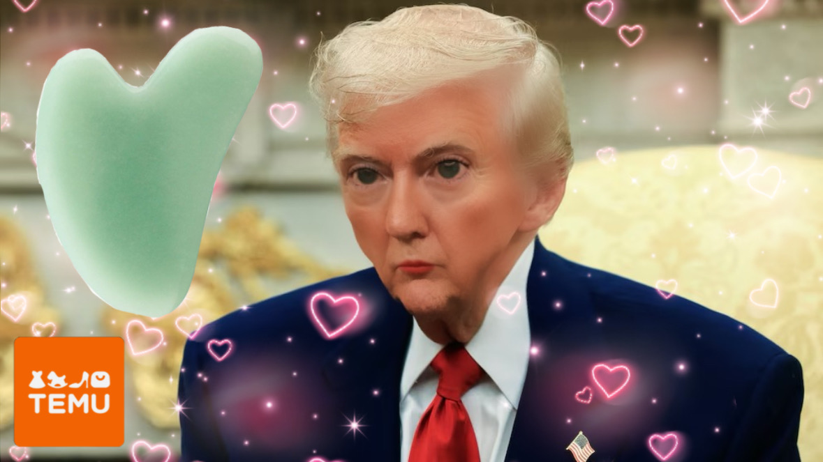 We all have our insecurities. Believe it or not, even the President of the United States does. Reportedly, Temu delivery driver Kyle Scott, delivered a large shipment of jade green gua sha and pink marble face rollers to the White House last Tuesday. Trump asked that they be delivered directly to his ensuite bathroom, as to not reveal his insecurity to any staff members of the White House. Scott, who has been employed at Temu for a dedicated four months, entered the White House through a secret trapdoor on the East Wing. He meekly approached the golden hallway to the bathroom, which reportedly was adorned with multiple oil paintings of Trump wearing the skin of a different animal in each one. Scott placed the box on the leather bidet toilet cover. While attempting to tiptoe away, a velvet-robed Trump emerged from behind the satin shower curtain and approached Scott. Trump grabbed Scott’s wrist and allegedly begged Scott to teach him to use a gua sha. Trump confessed to Scott that he had been suffering from insecurity surrounding the strength of his jawline after seeing a presumably AI-generated image of JD Vance with a rock hard chin and commanding silhouette. Trump told Scott that it was his patriotic duty to mentor him in the intimate art of the gua sha. After Scott feebly explained that he was just the delivery driver and not a beauty influencer or a traditional East Asian medicine practitioner, Trump called security to remove him immediately. El Salvador will be Scott’s new place of residence for the foreseeable future.