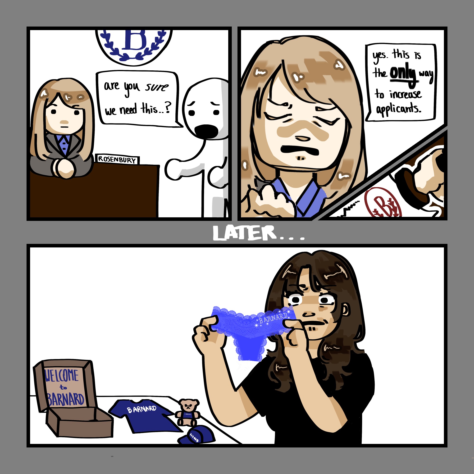 Barnard/Cartoons Barnard Increases Tuition to Accommodate Purchase of Barnard Thongs by Kesang Gawa September 29, 2025October 6, 2025 Art by Kesang Gawa Share this Facebook Messenger Twitter Pinterest Linkedin Whatsapp Reddit Email Post navigation Previous Story Previous post: Columbia Sets Up “University President” Stand at Career FairNext Story Next post: Columbia and Barnard Dining Announce “Round Up for Columbia” Program