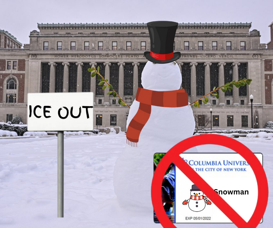 After checking their scarves, mittens, and tophats, in a blatant strip search, campus security confirmed that none of the snowmen had a CU ID or a guest pass. The snowpeople, one Barnard student corrected the crowd (and this reporter) to avoid assuming their gender, were escorted off campus. In one of the more horrific scenes, security took off heads, torsos, and legs, and began rolling them to the 116th Street exit. Investigations are underway to determine whether students allowed the intruders onto campus or whether additional security is needed to maintain the frigid rules governing campus entry.